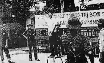 tay chào dân chúng. Sau đó, bọn chúng tập hợp bọn lâu la ngay trước tòa hành chánh để kết tội Đại Tá